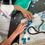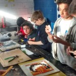 Estudiantes del Instituto Leonardo Da Vinci trabajaron junto a Ángela Fontan y María Elena Togni en la confección de un mural de mosaicos para embellecer y revalorizar la fachada de la Biblioteca Popular Domingo Faustino Sarmiento. El proyecto se llama “Arte y Letras. Ideando presente, construyendo futuro” y se enmarcó en el centenario de la Biblioteca.